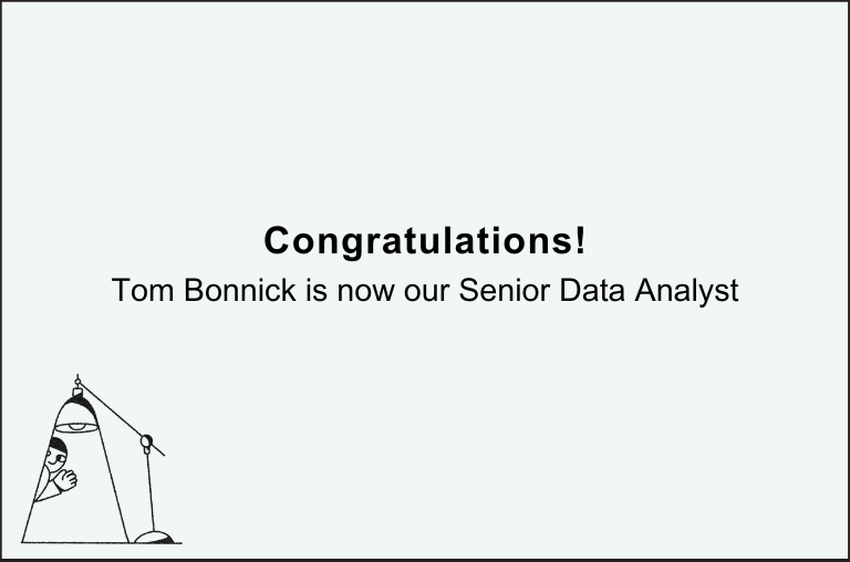 It’s time to wish a heartfelt congratulations to Tom Bonnick, who has recently had a well-earned promotion from Data Analyst to Senior Data Analyst (sorry Tom, we couldn’t think of a fancier job title for you).